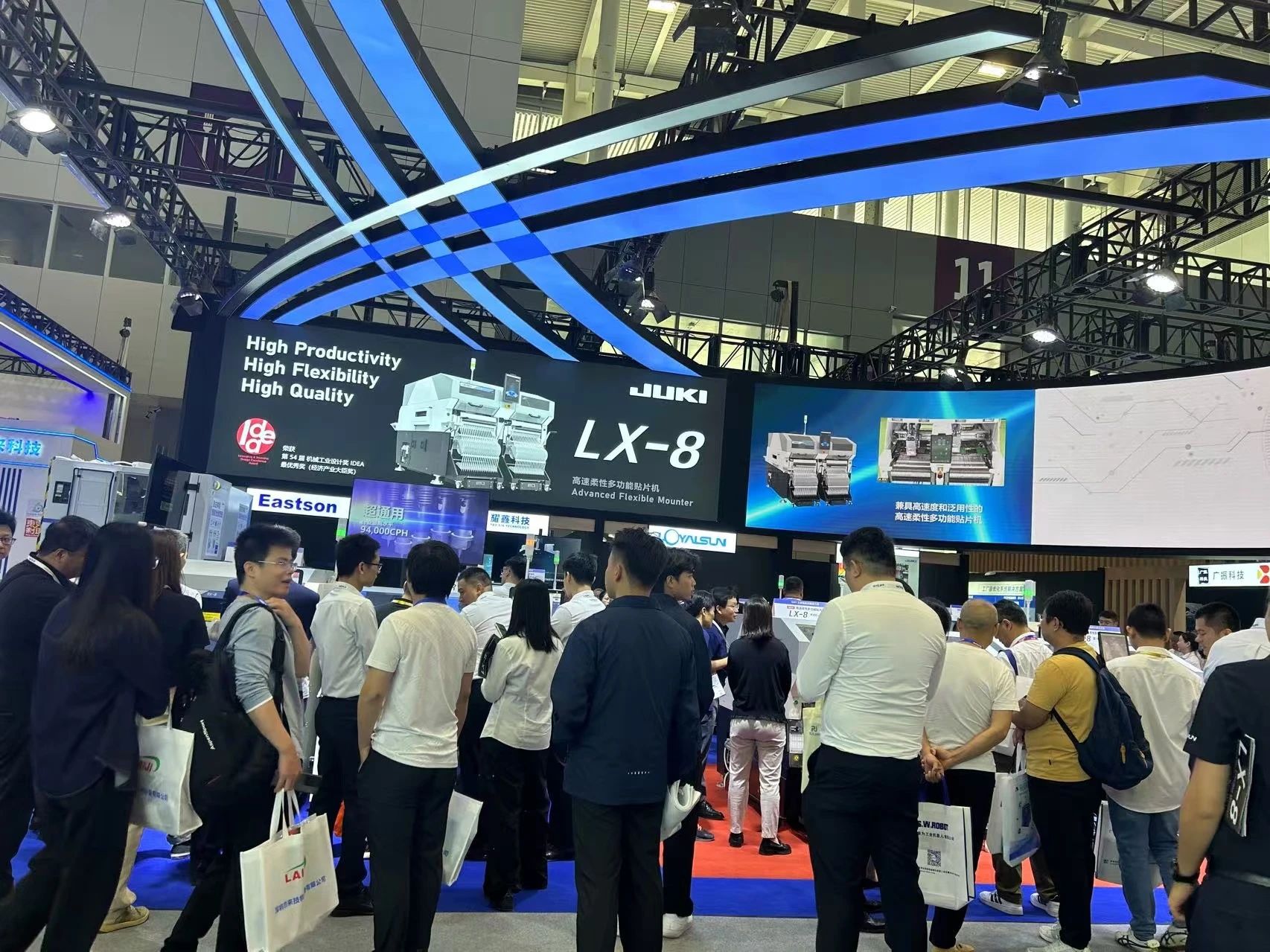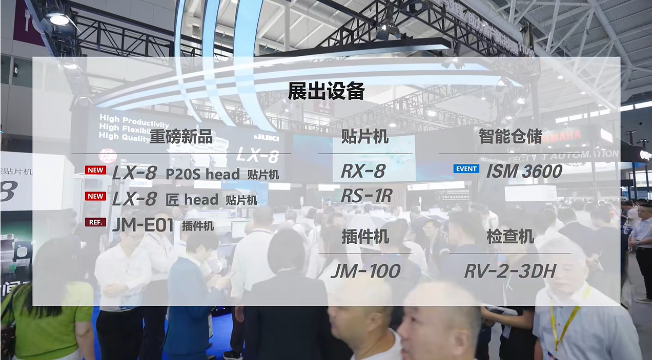 展會(huì)現(xiàn)場(chǎng) Juki 展出多款機(jī)型 重磅推出新品全自動(dòng)貼片機(jī)LX-8 自動(dòng)插件機(jī)JM-E01